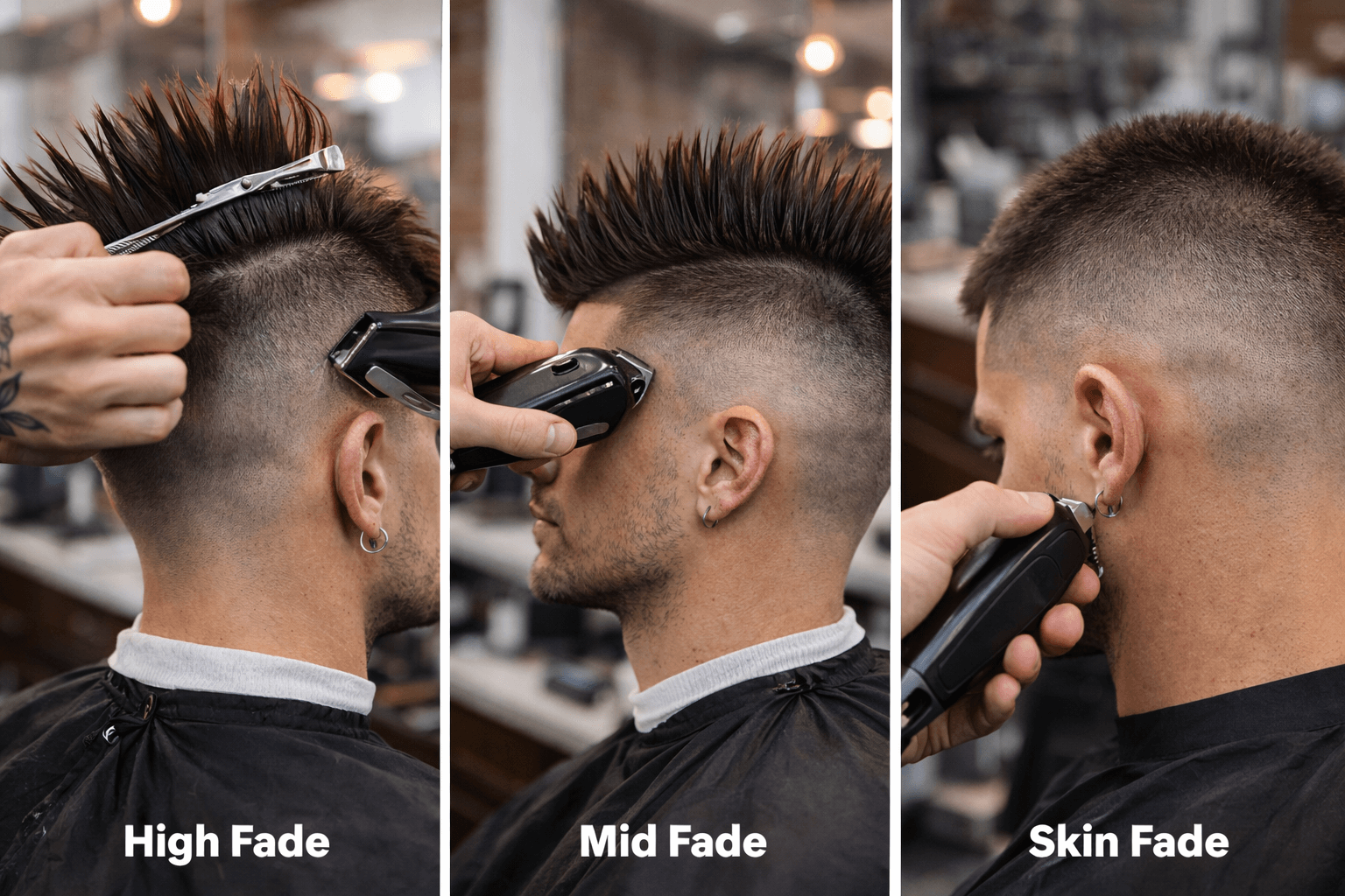 To achieve a faded faux hawk, ask your barber to set the clippers on 0, then the hair should be faded into a grade 2, using 0.5 to 2 grades.
